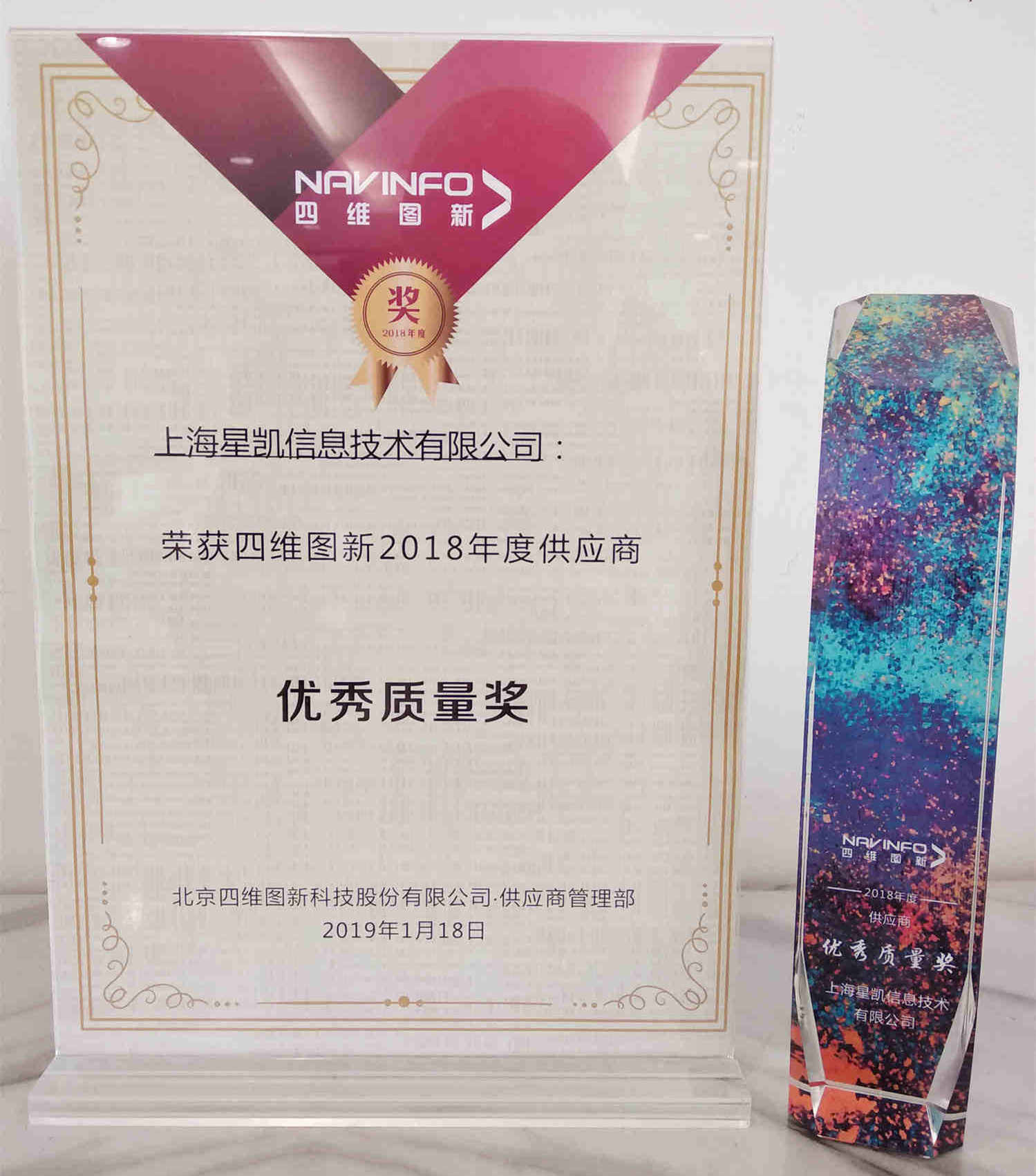 上海星凱榮獲四維圖新2018年度供應商優秀質量獎項