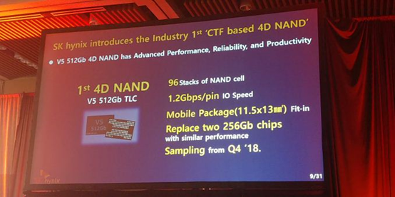 SK海力士4D NAND初期是96層堆疊的512Gb TLC,I/O接口速度1.2Gbps,預計將在今年Q4送樣。SK海力士還將推出96層QLC NAND,單Die容量1Tb,預計將在2019年下半年送樣。