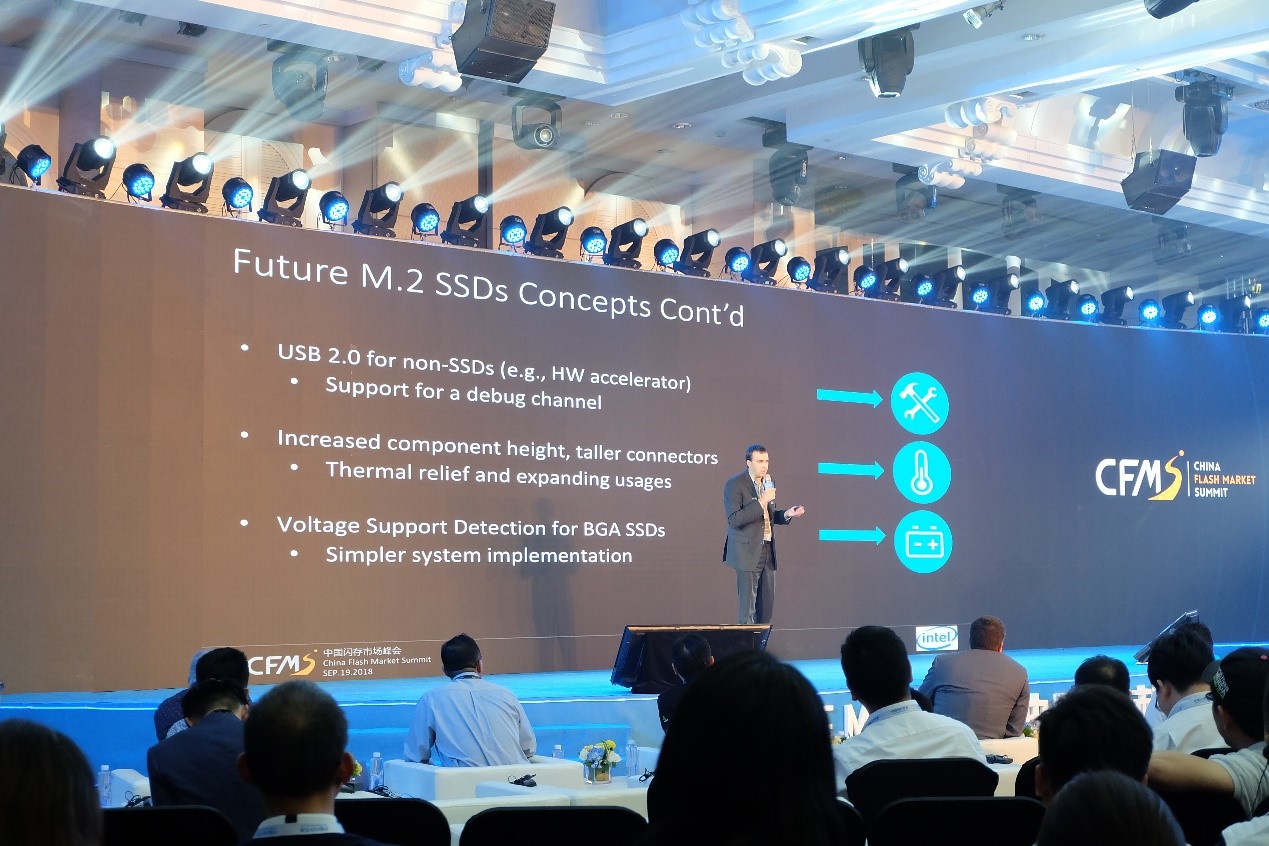 另外,英特爾資深架構師Anthony Constantine先生表示PCIe NVMe將成為主流接口標準,英特爾也將推出11.5mmx13mm的BGA SSD,而且BGA封裝支持2.5V NAND,有效降低功耗,未來EDSFF將在散熱方面會有更杰出的表現,同時也希望對NAND進行進一步優化。